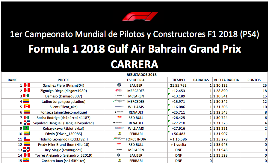Formula 1 2018 Gulf Air Bahrain Grand Prix
